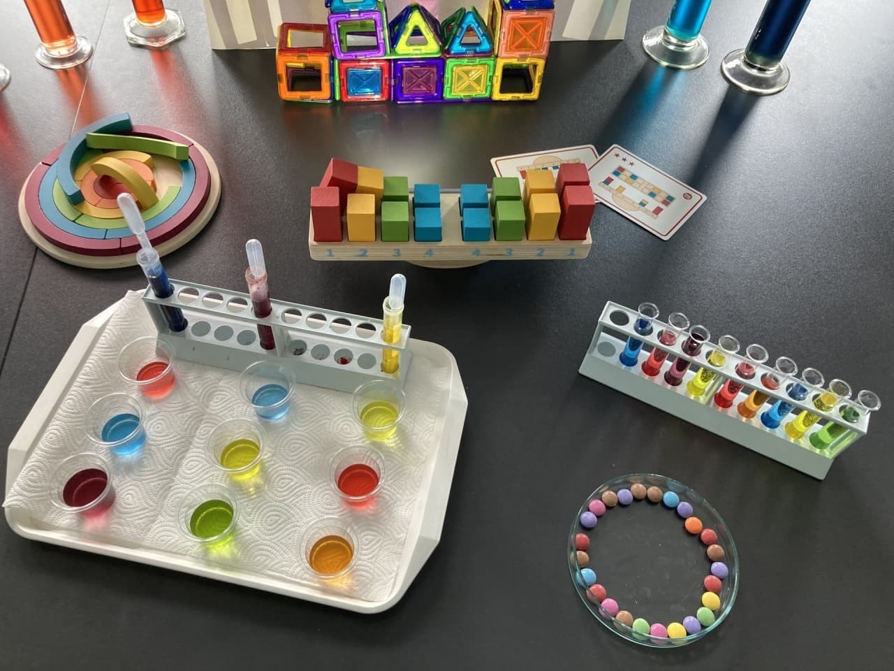 Čekají Vás barevné skládačky, červené brýle, prosvětlování a hry se stíny. Troufáte si na pipetování? Vyzkoušíme míchání barev na mnoho způsobů.
