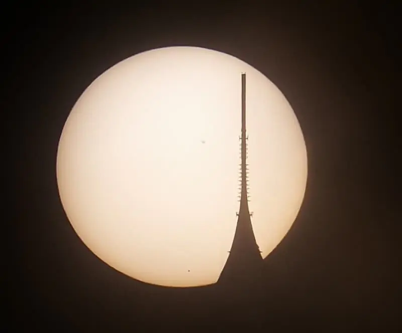 Úvodní snímek článku: fotografie Slunce 9. 5. 2016 zapadajícího za hotelem a vysílačem na Ještědu. Toho dne na něm byla jedna větší skvrna (flíček v horní části), ale hlavně přes kotouč Slunce přecházela planeta Merkur (malá kulatá tečka dole). Fotografováno mobilem za okulárem 8cm dalekohledu vybaveného speciální fólií pro pozorování Slunce. Autorem fotografií je Martin Gembec